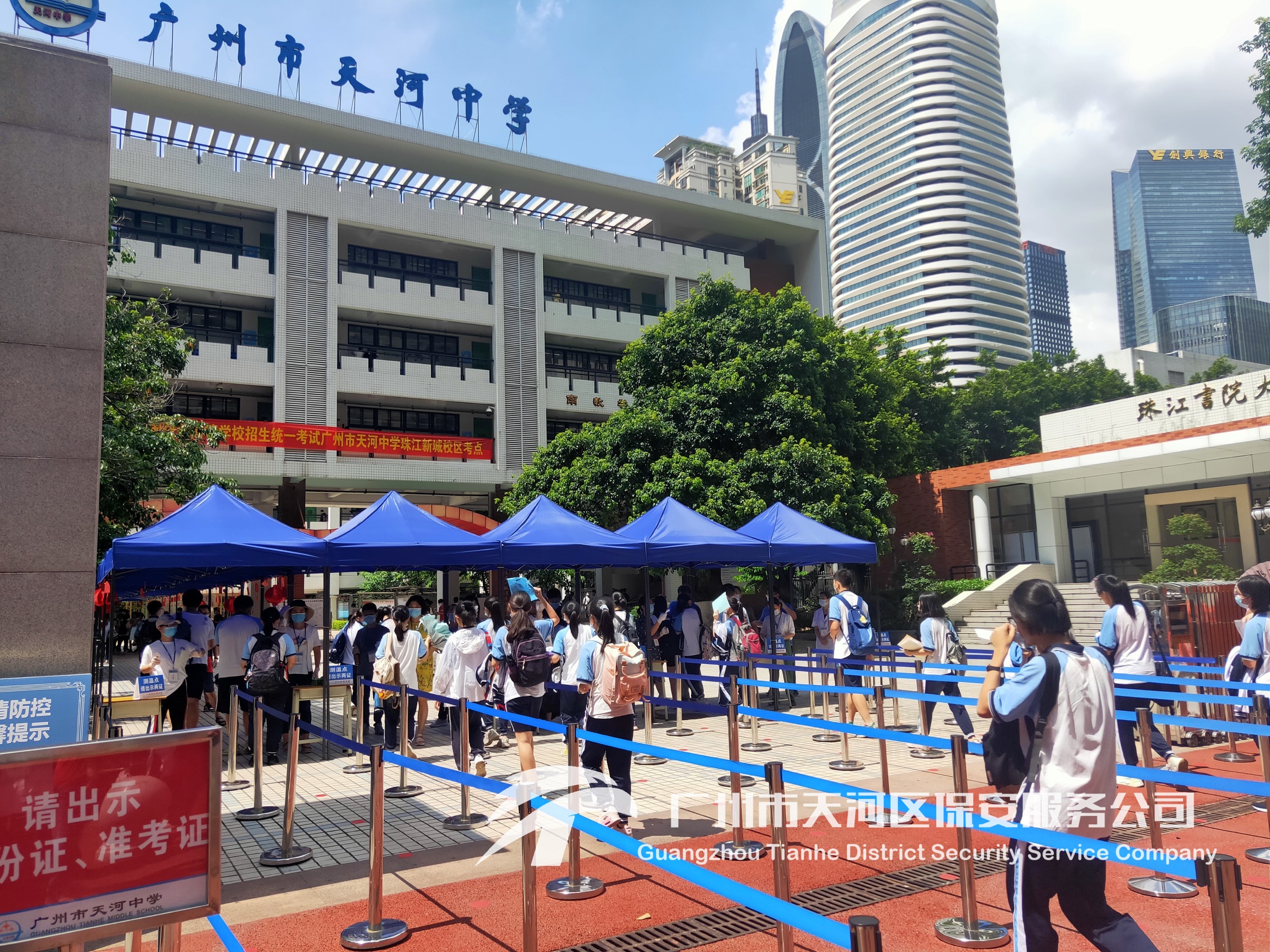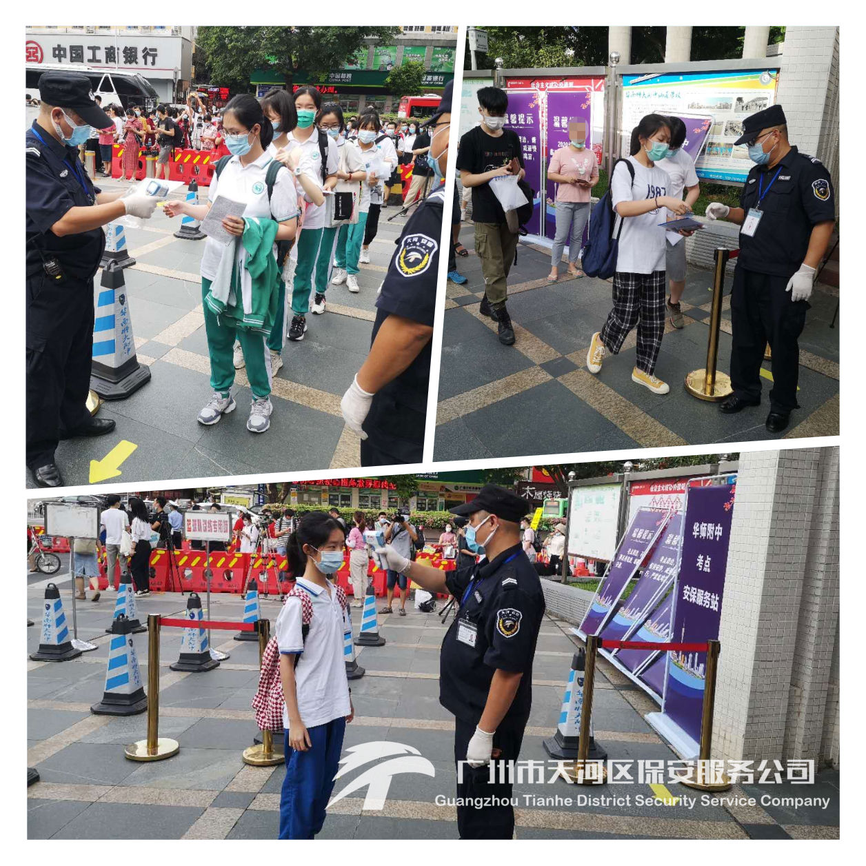 我司驻校安保队伍结合往年安保工作经验和疫情防控知识,针对各个考试学校进行精心部署、周密安排,认真落实各项安保防疫措施,为这次疫情中的高考营造安全可靠的考试环境,确保考生不受外界影响,安心考试。