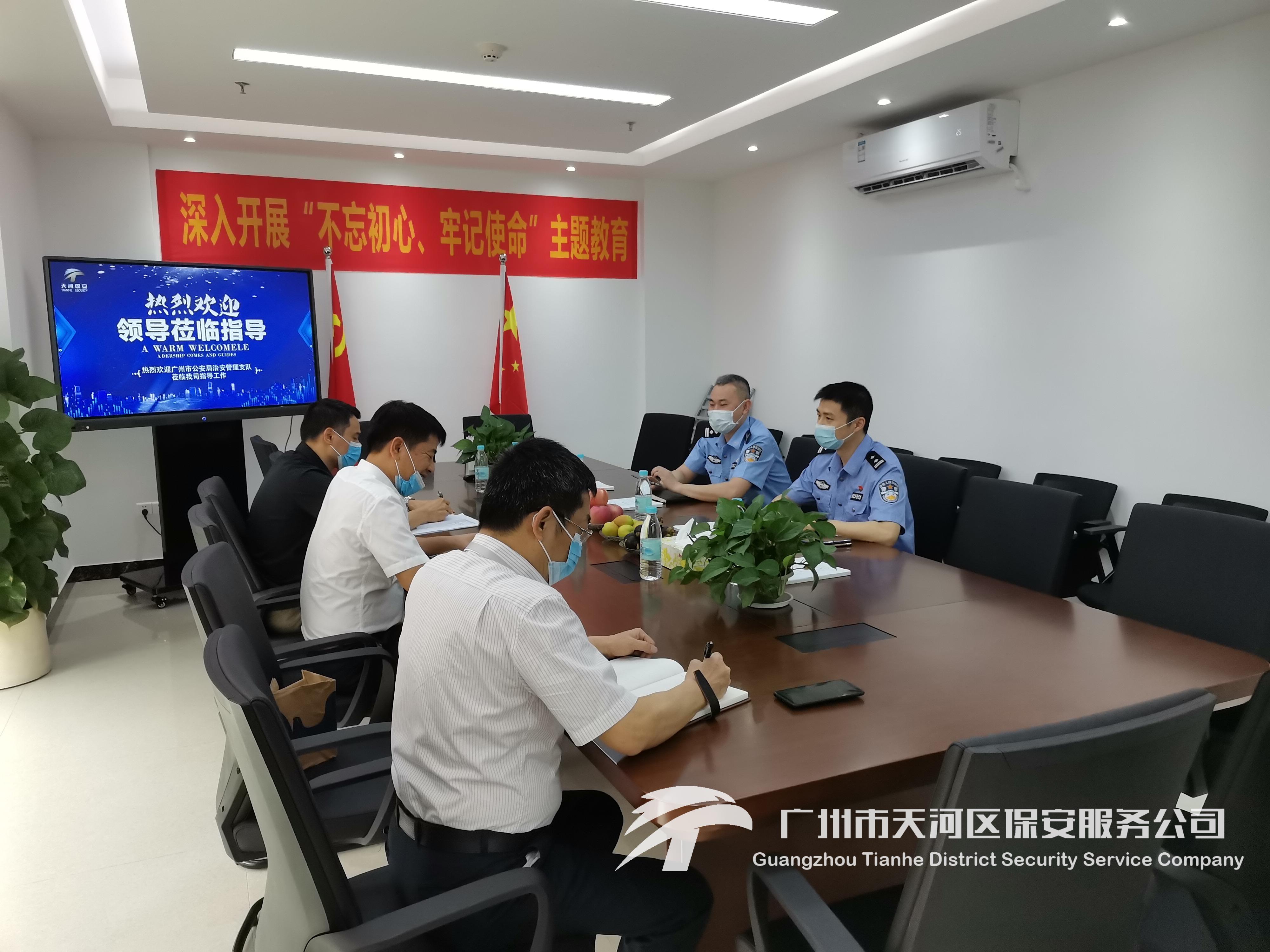 为深入全面了解我司“新天河模式”推进和疫情防控工作情况,2020年5月14日下午,广州市公安局治安支队保安科林科、揭科莅临我司调研考察、指导工作。区公安分局治安大队吴教、苏大全程陪同调研。