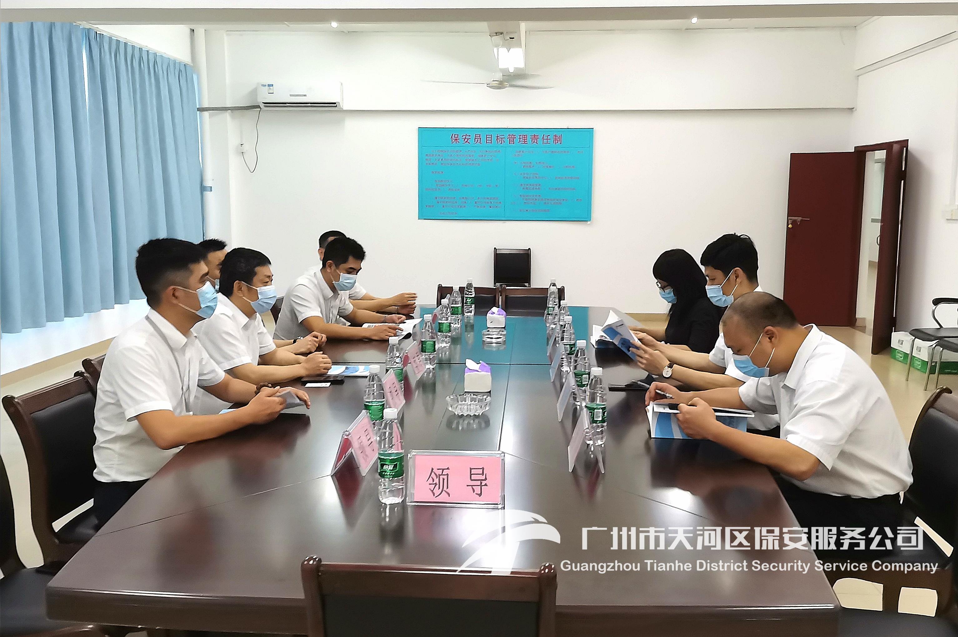 交流团随后走进会议室开展交流会议,会议中主要讨论疫情期间工作情况,对市局推行的“新天河模式”进行学习探讨,对企业管理架构、运作模式等展开交谈,交流团在讨论过程中均感受益良多。携手共进,合作共赢,我司期待在之后的保卫工作里越做越好,共铸辉煌。